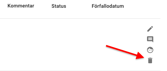 Längst ut till höger på varje rad finns en ikon som ser ut som en papperskorg. Du klickar där för att ta bort den anmälan.