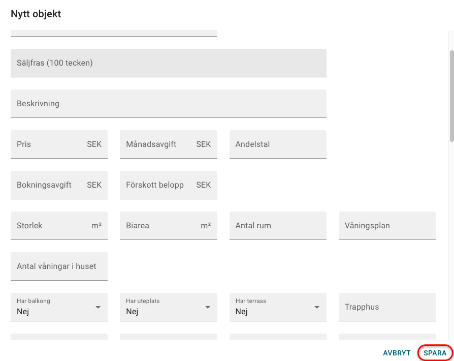 När du har klickat på plusset öppnas ett formulär där du fyller i uppgifter till objektet.